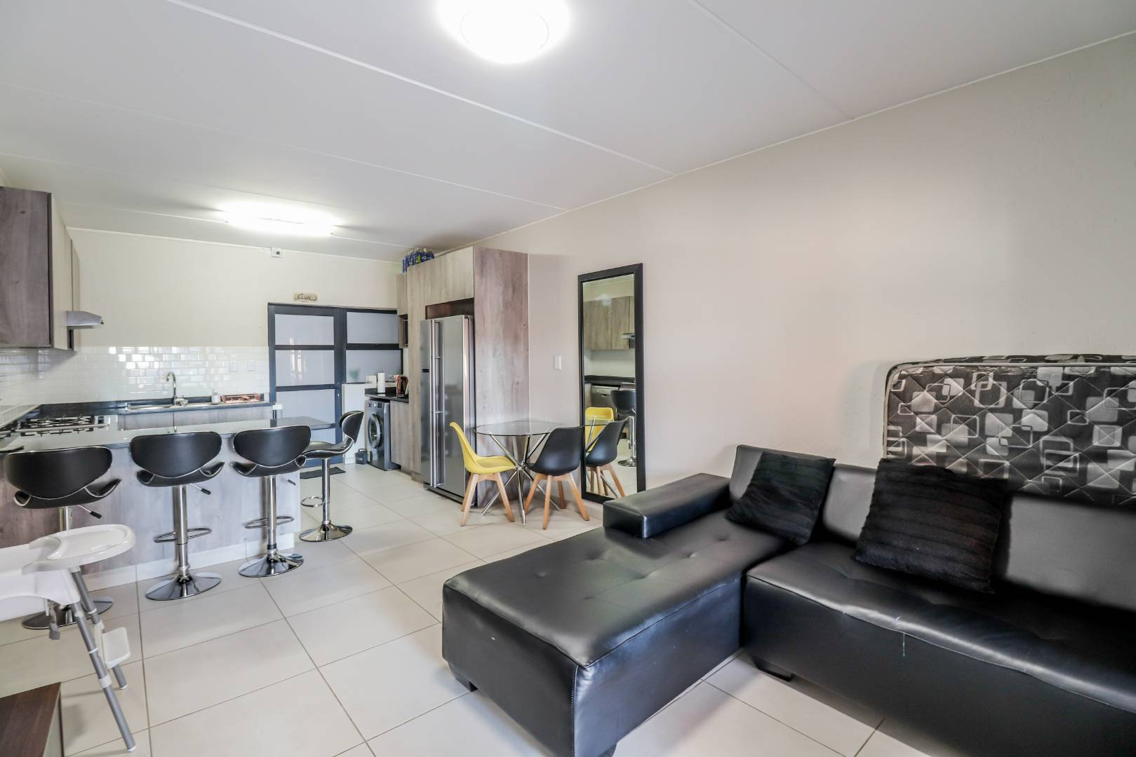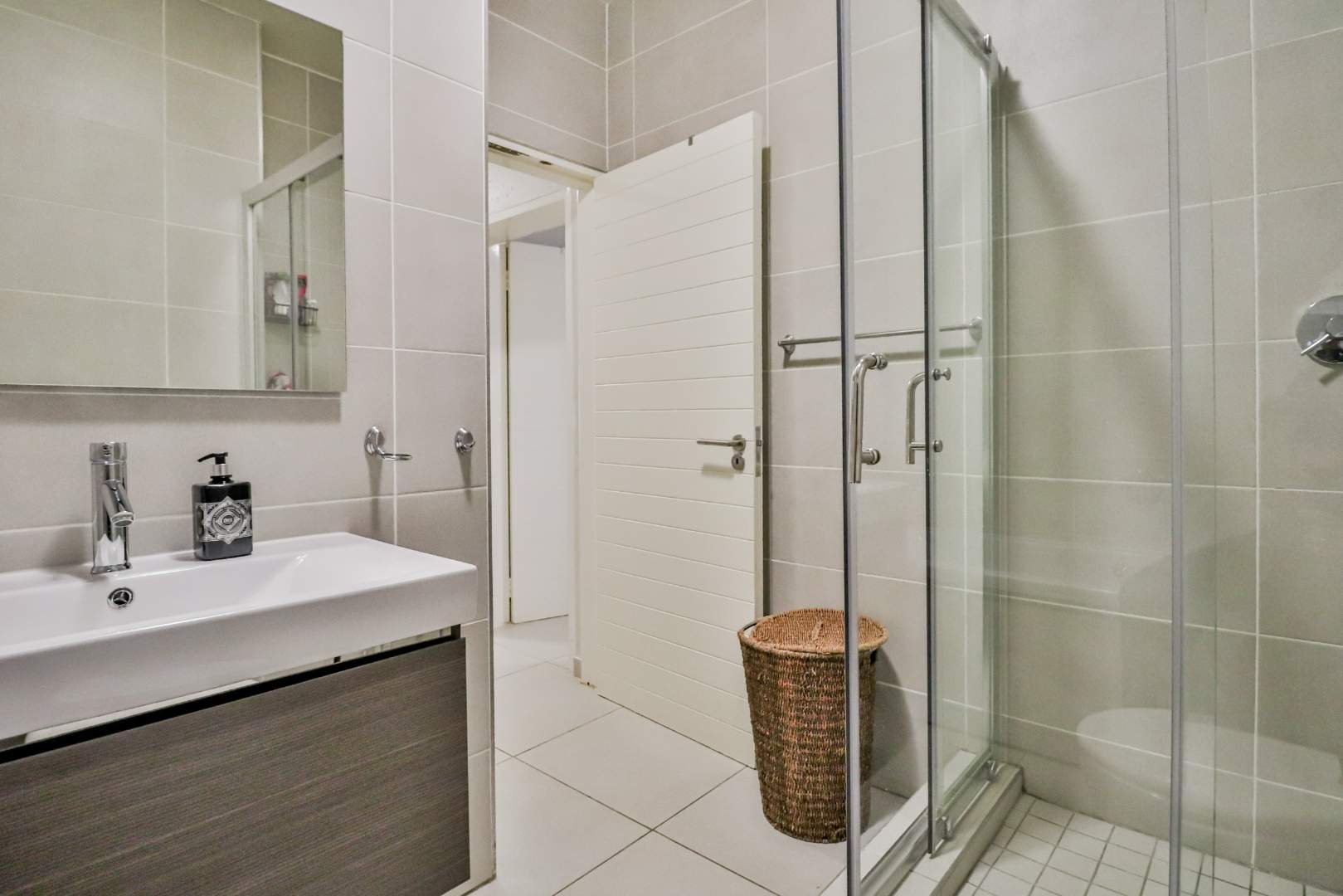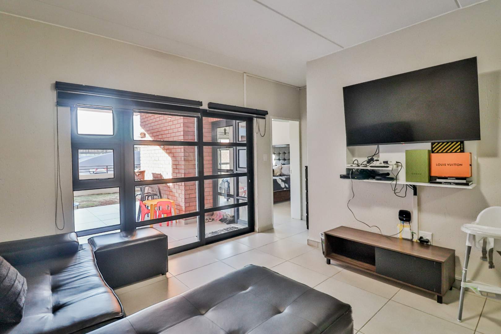 The unit offers three tastefully tiled bedrooms, each complete with built-in cupboards, ensuring ample storage space. Additionally, there are two modern bathrooms for your convenience.