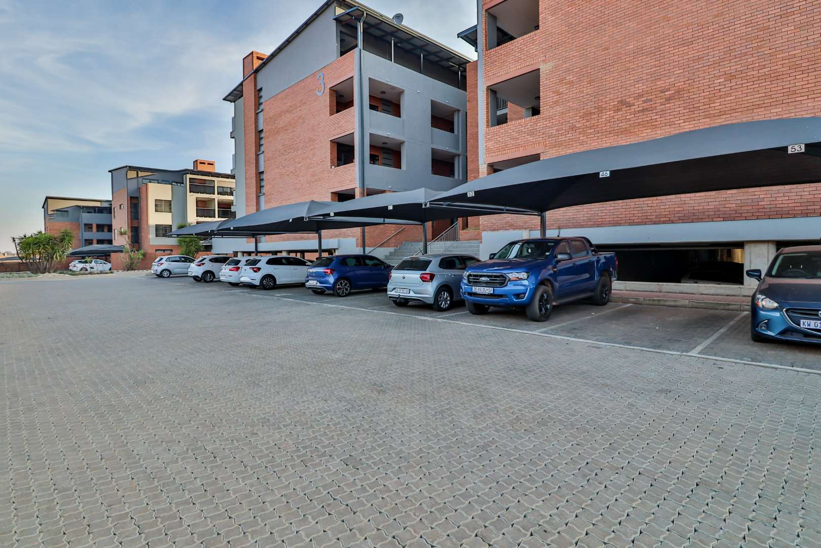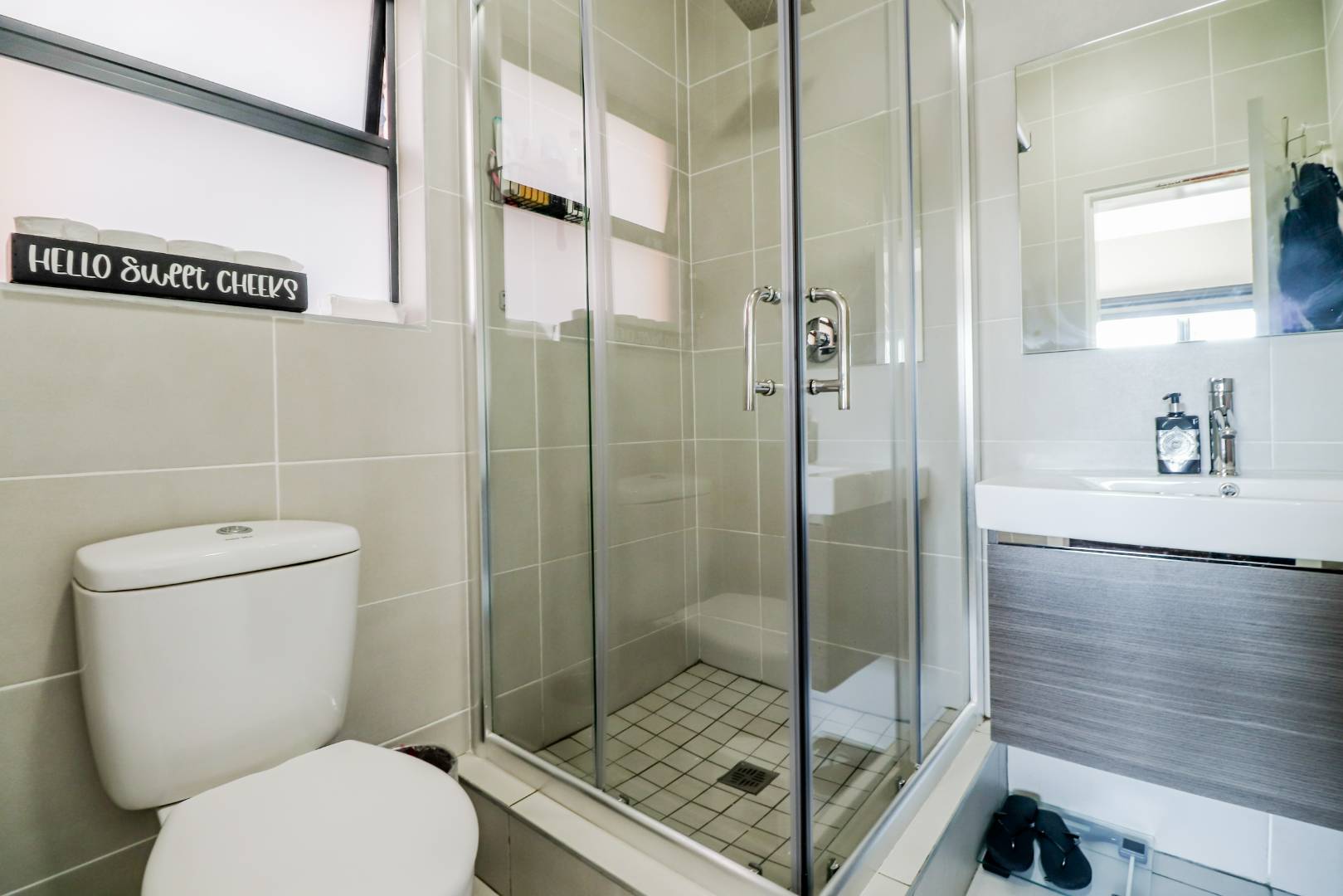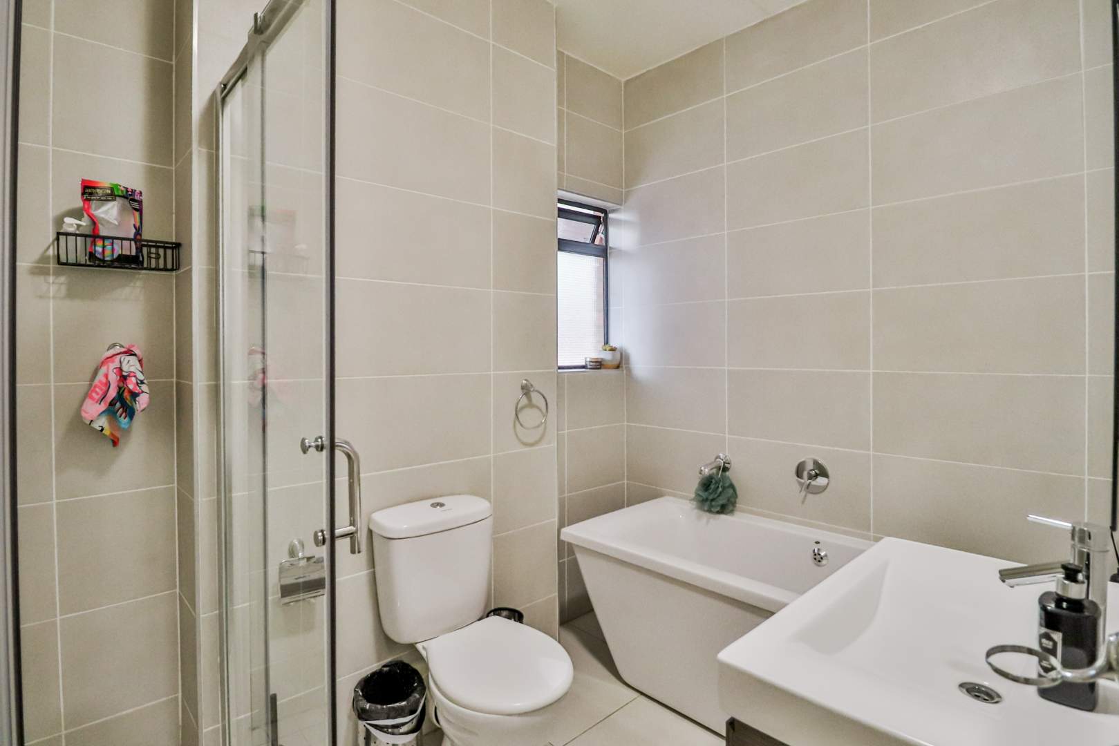 The unit offers three tastefully tiled bedrooms, each complete with built-in cupboards, ensuring ample storage space. Additionally, there are two modern bathrooms for your convenience.