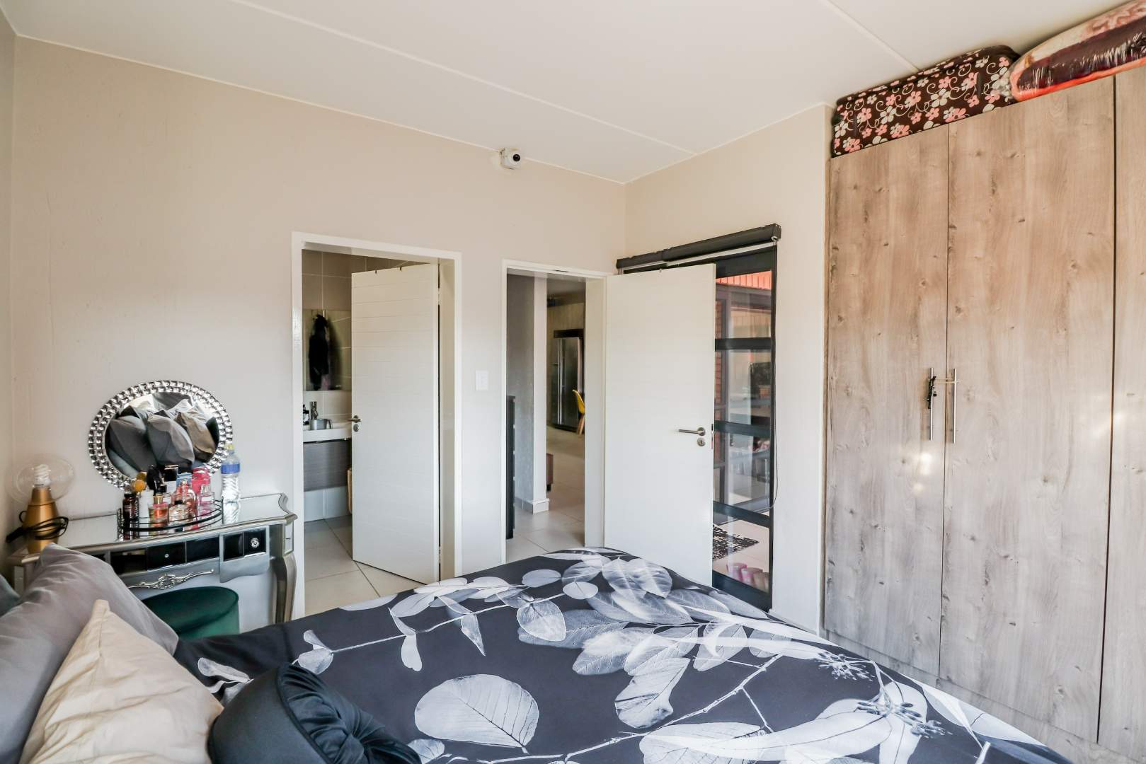 Step outside onto the covered patio, where you can enjoy the outdoors and entertain with ease, thanks to the built-in braai and private garden.