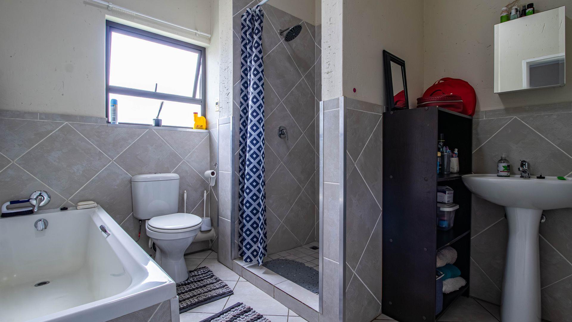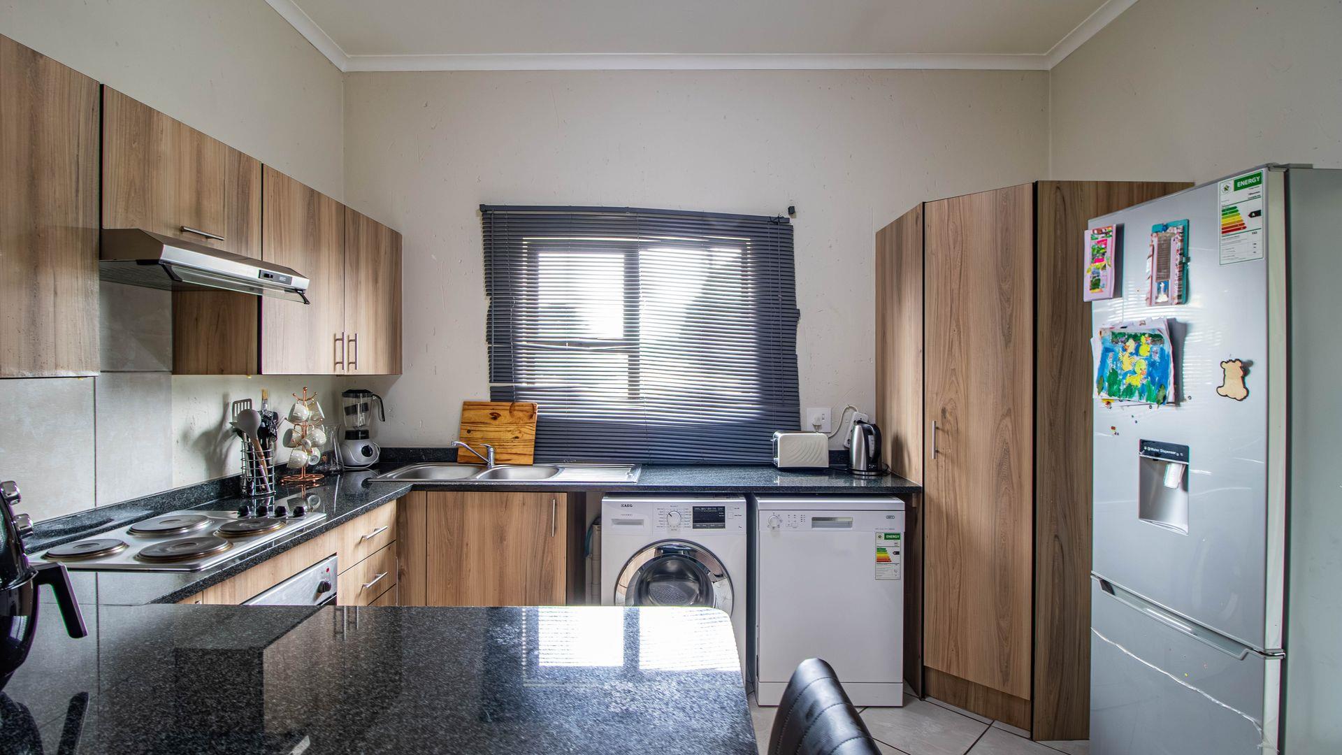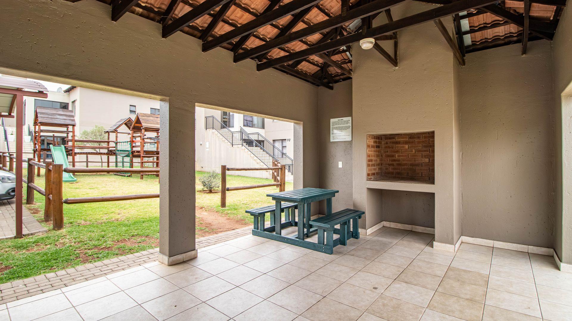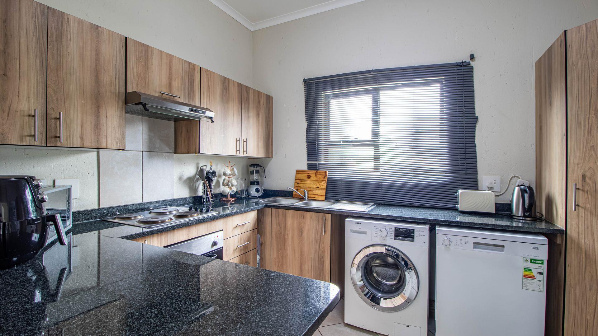 The lounge area seamlessly extends to a delightful patio, complete with a built-in braai, where you can enjoy outdoor dining and gatherings with friends and family. This unit offers two well-appointed bedrooms, each with built-in cupboards, ensuring ample storage space. The full bathroom is elegantly designed, featuring both a bath and a shower for your convenience.