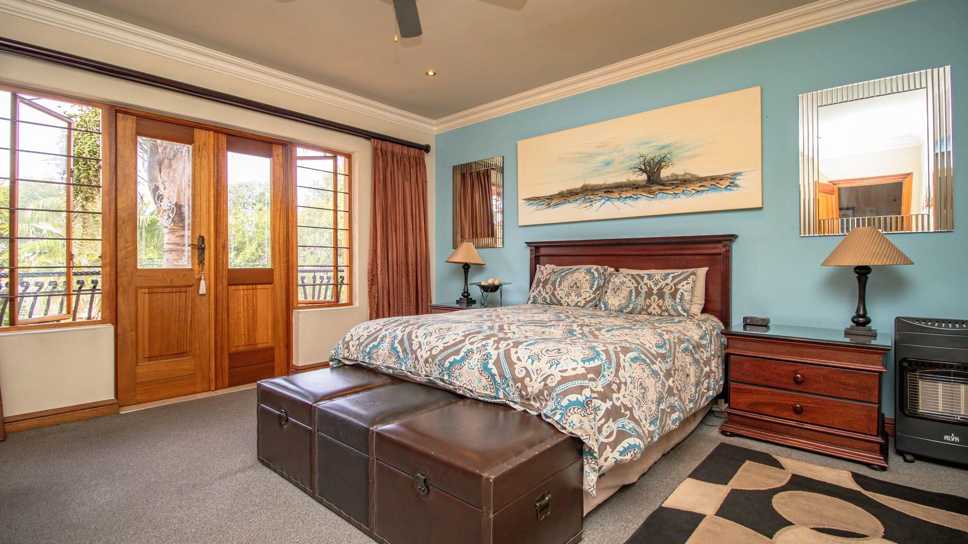 Additional amenities include staff quarters, a three-car garage, and undercover parking for three additional vehicles. The property is equipped with a comprehensive alarm and camera system, ensuring peace of mind.