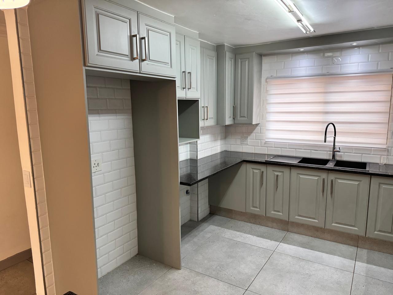 Step inside to discover three bedrooms, each adorned with pristine tiles and elegant built-in cupboards that provide ample storage space. The two contemporary bathrooms boast stylish finishes, combining functionality with a touch of luxury. The open-plan layout seamlessly connects the kitchen, dining area, and lounge, creating an inviting space perfect for entertaining guests or enjoying cherished family moments. The kitchen stands as a centerpiece, featuring a charming breakfast nook and a state-of-the-art SMEG stove, ideal for casual meals or morning coffee.